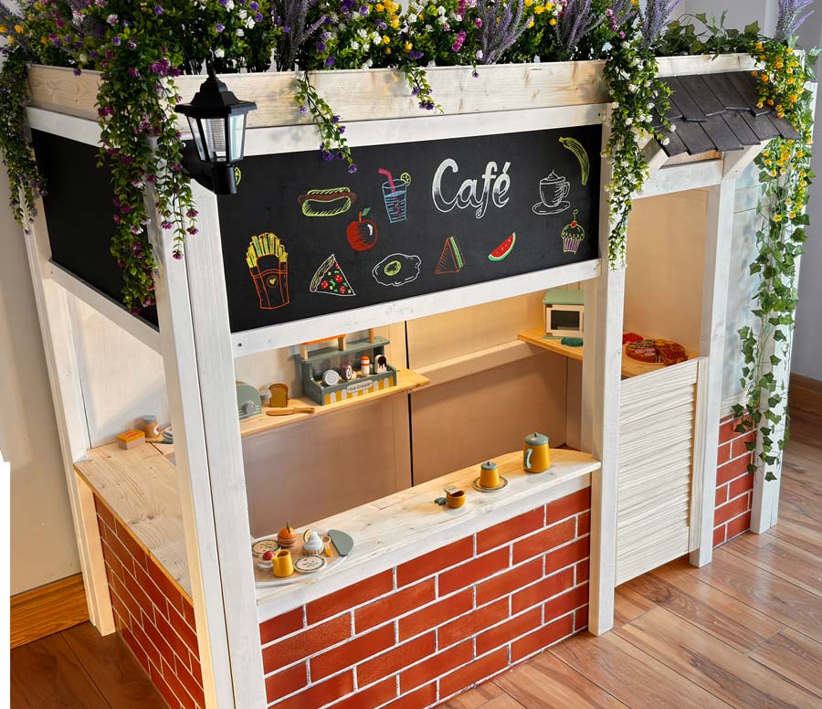 A beautifully crafted miniature town designed for imaginative role play. Children can explore real-world scenarios through custom-built shops, houses and stations