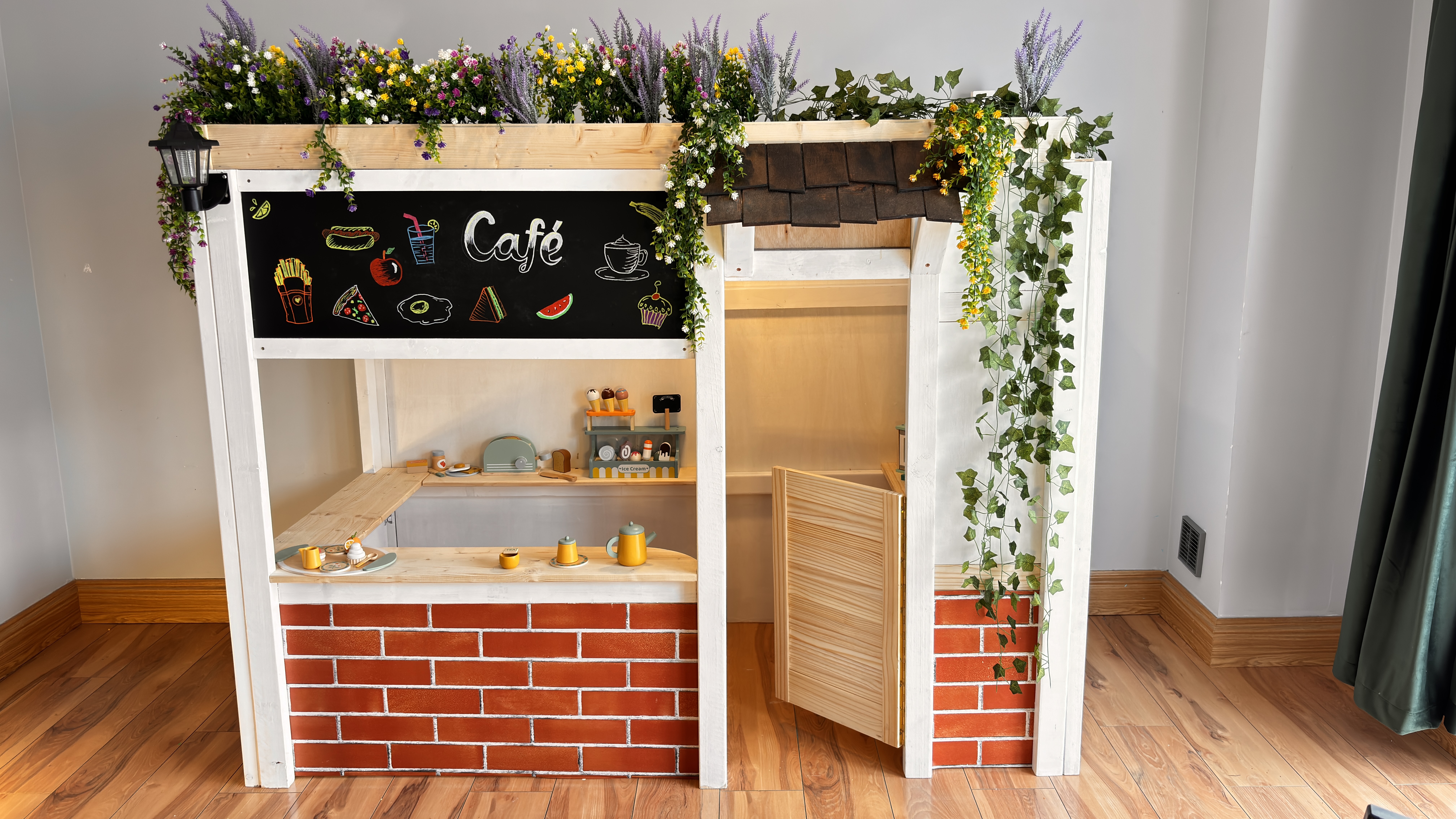 Our Mini Town is a custom-designed play environment that brings real-world spaces to child-sized life. From cafés and shops to workshops and houses, each element is carefully handcrafted to encourage imaginative role play, social interaction, and learning through experience. Designed with early childhood development in mind, the Mini Town helps children explore everyday roles, build communication skills, and express creativity in a safe, beautifully built environment.