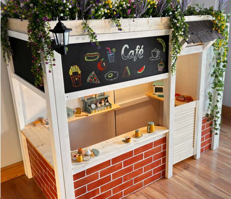 A Mini Town is a custom-built, child-sized environment featuring spaces like cafés, shops, or workshops — designed to inspire role play, social interaction, and creative exploration. It can be tailored to any theme or space.
